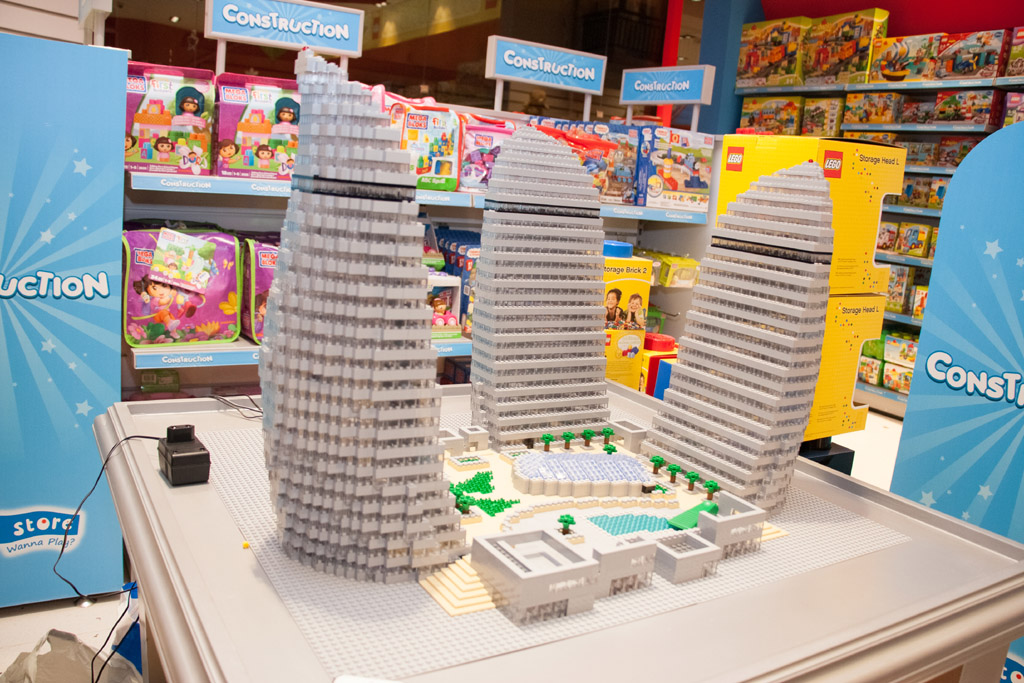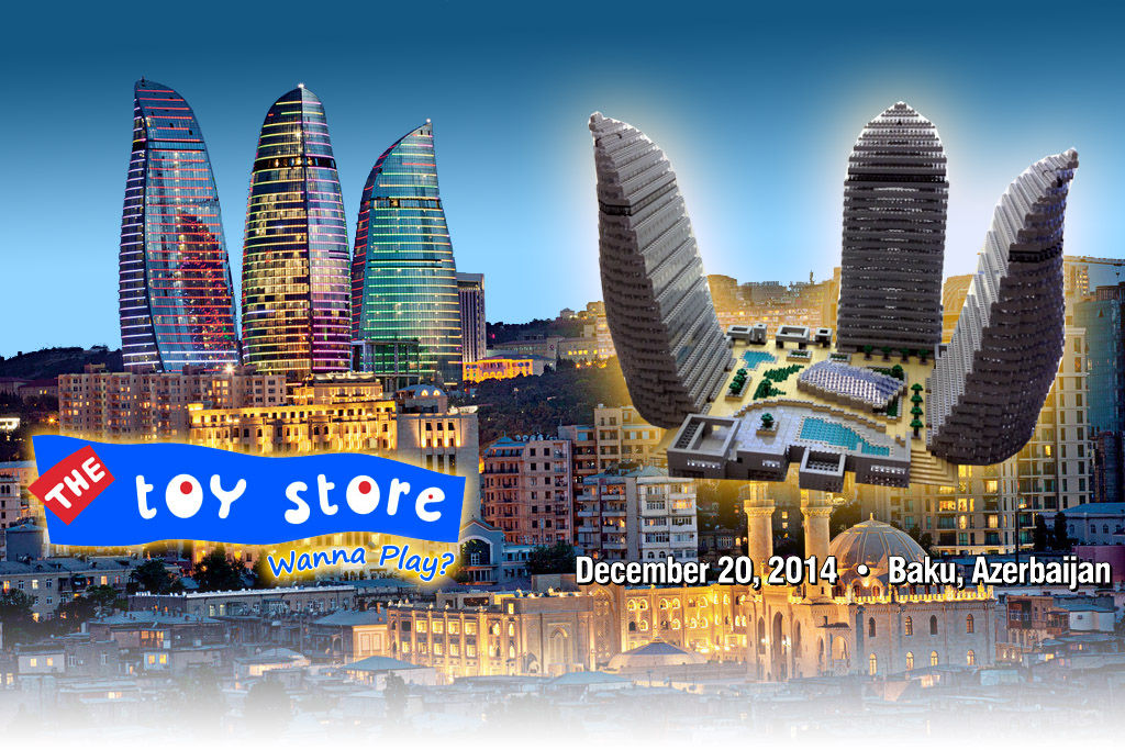| Here are a few pictures from my latest LEGO endeavor. I went to Baku, Azerbaijan for a grand opening event at The Toy Store. They hired me to build a LEGO replica of The Flame Towers, the most locally recognizable skyscrapers, during the event. |